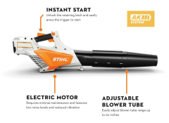 Lightweight and easy to use, the STIHL BGA 57 battery-powered blower is ideal for noise-sensitive areas.