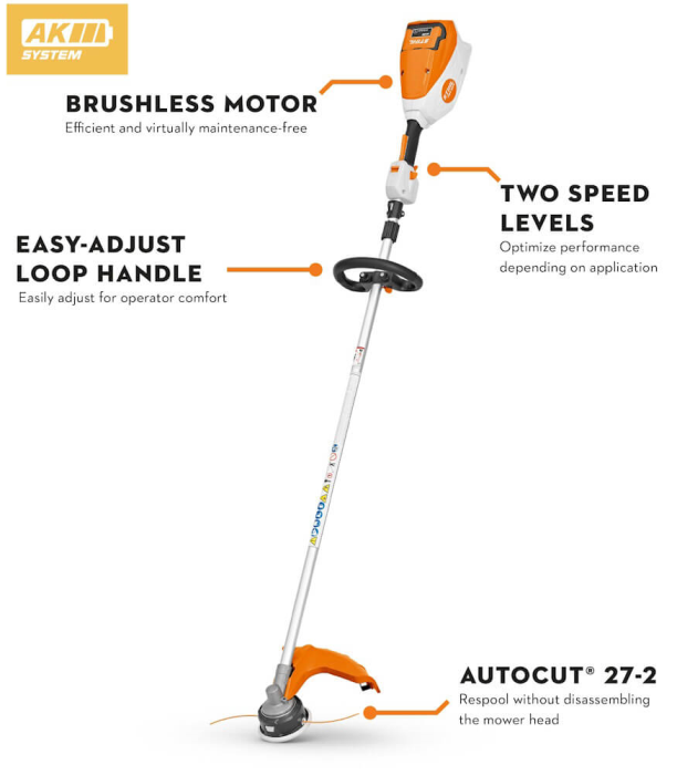 The FSA 80 R trimmer features a loop-handle design with quick release, so you can easily adjust it to fit your size—no tools necessary. This trimmer offers a virtually maintenance-free experience thanks to the brushless motor and a variable-speed trigger that allows you to optimize performance and run times to get the job done. From power and intelligence to operator comfort, this trimmer gets the job done efficiently.