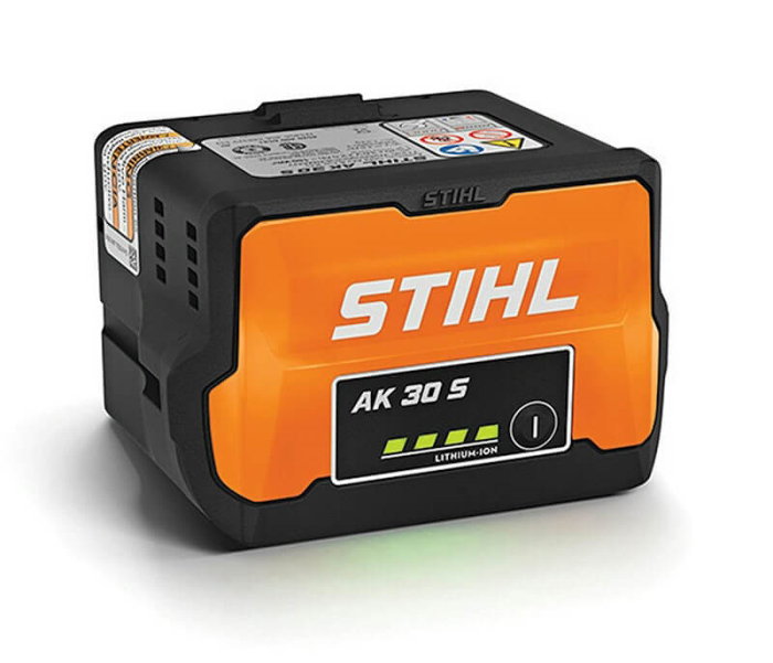 AK 30S Lithium-Ion Battery - The AK 30 S is the highest-powered battery in the AK System, now featuring a 35% peak power increase* and upgraded proprietary software provides optimal run times for demanding jobs. Also, the AK 30 S has STIHL Constant Power ensuring that the user can take advantage of consistent power over the complete run time of the battery.