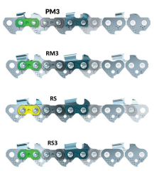 Oilomatic® Picco Micro (PM3) - The STIHL PICCO™ Micro™ 3 chain is a low-kickback, narrow kerf, smooth-cutting, and low-profile chain ideal for small to mid-sized chainsaws with between 1.5 kW (2.0 bhp) and 1.9 kW (2.5 bhp). It performs equally well as compared to the previous model, with the only difference being a slight increase in weight. This semi-chisel chain does not usually get dull as fast as a full-chisel chain in normal use and is easier to maintain and sharpen.