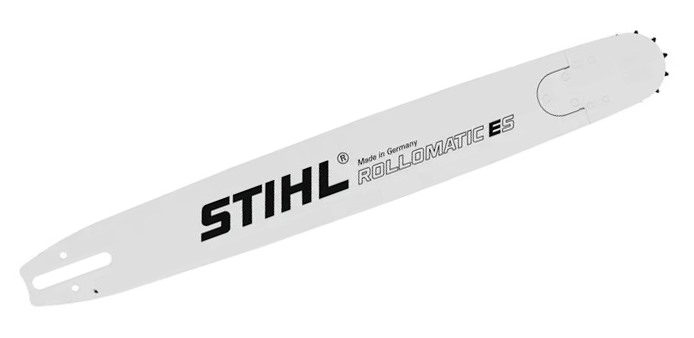 ROLLOMATIC® E Guide Bars - The ROLLOMATIC® E is a general-grade laminated guide bar made of high-grade steel. Consisting of three electrically welded metal plates, it is lightweight, yet provides great stability. A sprocket is incorporated in the nose of the bar that carries the saw chain from the top to the bottom of the bar. This not only reduces wear, but also enables the bar nose to be made considerably narrower. This type of construction is an advantage where extensive use is made of the bar nose (i.e. limbing and boring). All STIHL ROLLOMATIC® bars are designed with a narrow nose to help reduce kickback tendencies. And the star-shaped sprocket can be replaced several times before the whole bar is due for replacement, increasing the service life of the bar.