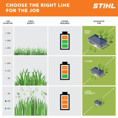 Premium Round Line - This high-performance trimmer line is manufactured to fit all STIHL and competitive line trimmer heads. It is available in .065, .080, .095, .105, and .130 diameters and is specially formulated to prevent fraying and welding. It's an excellent "multi-purpose" line, designed to hold up under a wide range of cutting conditions. We can help you choose the diameter that's right for your trimming needs.
